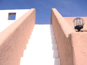 天井高4Mの一番大きい部屋です。スペイン製のテラコッタ床、特徴ある階段が人気です。