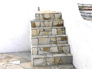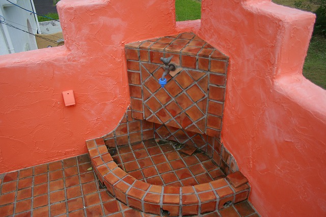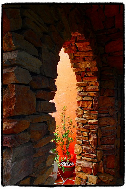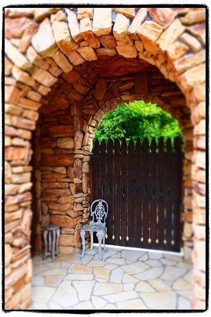 MAIN STUDIOとBATH&KITCHENを結ぶ、石積みの回廊もいい雰囲気を出しています。