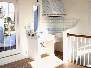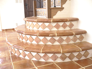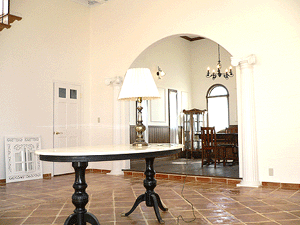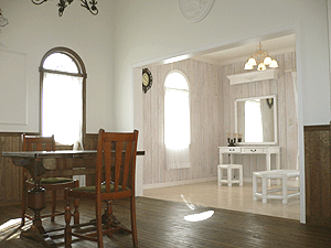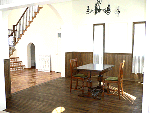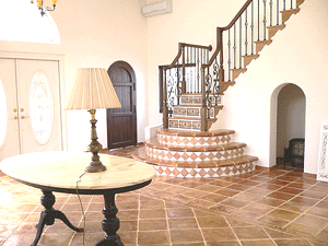 天井高4Mの一番大きい部屋です。スペイン製のテラコッタ床、特徴ある階段が人気です。