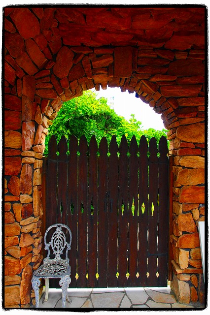 MAIN STUDIOとBATH&KITCHENを結ぶ、石積みの回廊もいい雰囲気を出しています。